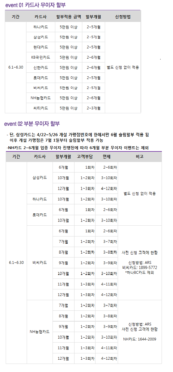 2017년 6월 카드사 무이자 할부 이벤트 안내