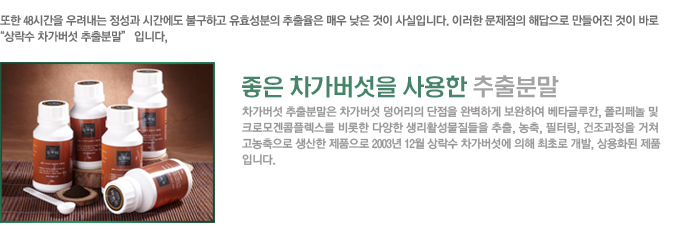 크로모겐 콤플렉스의 양은 3.74g입니다. 그러나 차가버섯 추출분말의 경우는