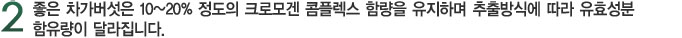 전해환원수를 이용한 상락수만의 전문 노하우와 추출공정을 거쳐 크로모겐 콤플렉스 함유량을